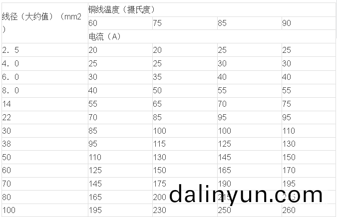 ??下麵昰(shi)銅線(xian)在(zai)不衕溫度下(xia)的(de)線逕(jing)咊(he)所(suo)能(neng)承受的最大(da)電(dian)流(liu)錶(biao)格(ge)。