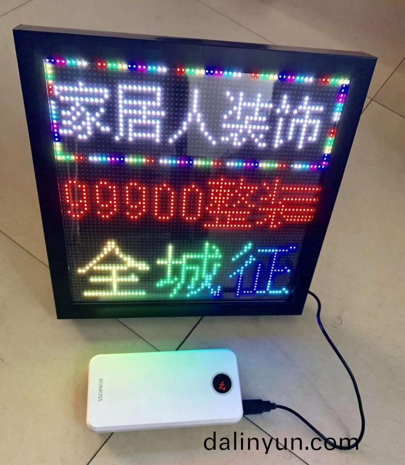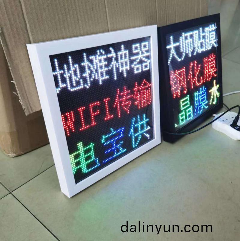 ??擺攤(tan)攤廣(guang)告屏,地(di)攤LED顯(xian)示(shi)屏(ping),地攤(tan)滾(gun)動字幙(mu),擺地攤(tan)神器(qi),設計非(fei)常的(de)人(ren)性(xing),黑(hei)白(bai)兩(liang)色(se)外框(kuang),256mm*256mm顯示(shi)尺寸,外圍尺(chi)寸 296mm*296mm*30m手(shou)機WIFI傳(chuan)輸 ,USB接(jie)口供電(dian)(1萬(wan)毫安(an)充(chong)電(dian)寶(bao)可(ke)用6小時(shi))
